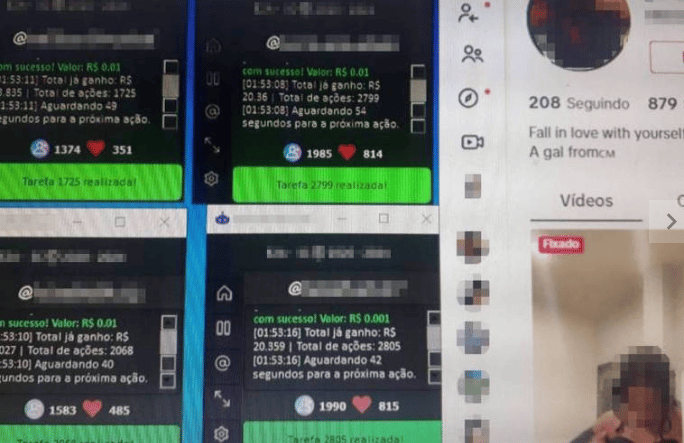 Plataformas recrutam usuários para engajar perfis com likes e comentários, ganhando décimos de centavos por interações.